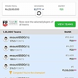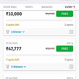 You will never won in this game... its a professional scam please suggest everryone to avoid it, never ever i saw a winner who has won in it in a league match where entry in lakhs... simply fake