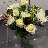 Ordered flowers called snow fall to cheer my friend up who has recently lost her dad. Colours were nice but for the price I paid which was the large bouquet costing £31.99! Then £5.99 for delivery I was gutted! Would have been better off going to the local supermarket and buying a £20 bunch!