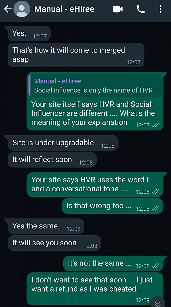 One fine day I got a call from ehiree.com and they asked me to register for resume services like Resume forwarding & Resume writing service and I registered for services but later I read this reviews in same site apart also go through for complaint reviews and I felt I lost my 250$ for this services but after 15 days. I was uploaded my resume in all job portal because don't know when we get opportunity. Now, I got a call according to my resume and I got placed.