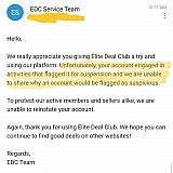 Just started using and getting good deals and wouldn't you no it they said you're account has been blocked for suspicious activity and they said we can't tell you why I know why they don't want people getting to many good deals so they put a block on your account so you can't get anymore good deals that's why they can't tell you why it is being blocked