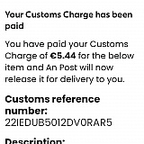 Hi Just want to make anyone aware of this website. When you google the company it comes up as espares.ie - and you think it's an Irish company I ordered a smart remote control for my TV. It cost over €56. I was also charged delivery fee of €4.99. All this is okay but then I got an email that it was in Customs and I had to pay over €15 to have it released. The website www.espares.ie states nothing about this. BE VERY AWARE OF WHAT YOU BUY FROM THEM IF YOU LIVE IN THE REPUBLIC OF IRELAND OR EUROPE. You'll be paying a hefty customs fee