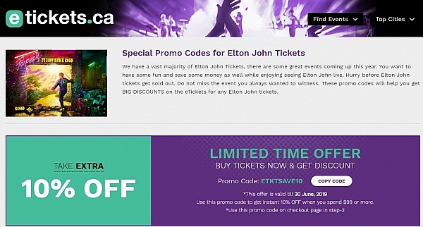 Since long I was using Stub-hub but was really sick of service fees and hidden charges, one of my cousin suggested me etickets.ca for buying concerts tickets, must say this website is great, properly designed & for tickets they have covered all the information to satisfy the consumer. I have Purchased Toronto Blue Jays tickets and loved the listing page as this website have the best Promo code listed on the ticket listing page itself to get the best discount on tickets. I have surfed a little and saw the coupons were listed on all the pages, Over all the experience was great, the seats were great, had a fantastic view on Rogers centre. I would definitely use your services again and all over again... NAILED.