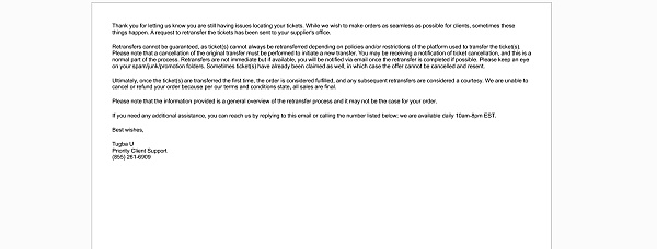 Terrible experience. Paid for the tickets. Informed of tickets transfer. Followed all instructions to get the tickets. Never received the tickets. Got the run around. Still unresolved.