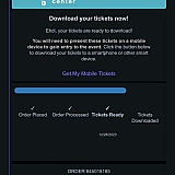 Please go straight to the website for tickets where the concert will be! Way cheaper! And for sure you will have a legit ticket and know you will get in your own seats After noticing the ticket was not even under my name or the order number on ticket did not match my order number email to me I after purchasing. Then contacted customer support to only find out I could not even receive my refund. This is a scam if the tickets order numbers do not even match nor my name is on the tickets themselves. After reviewing on BBB there were a lot of complaints to where people said they would go and tickets were already sold to another person. This is ridiculous. Scam! I do t even know how they are in business but as I stated scammers! But I am getting I. Touch with my bank changed my business card because can not trust these scammers.