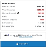 I was about to place an order with Eyeconic and the sales tax I was being charged seemed suspiciously high. My out of pocket charge was $225 but the sales tax was $43. I did the math and Eyeconic was charging sales tax on the entire price, which I believe is incorrect. I started Googling and in the State of California prescription glasses are considered a "medical device" and are exempt from sales tax for the end user. I reached out to their customer service, as I believe this is a big error, and got a pretty canned response saying they are a "retailer" and that's why they are charging sales tax. It doesn't matter who is selling prescription glasses but bottom line the end user should not be charged sales tax. I am no longer going to purchase from Eyeconic due to this issue.