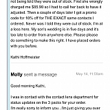 They still can't seem to find time to respond to me regarding my emails I sent or the review I posted. They said on May 14th that considering my bad experience, they would send one pair of complimentary contacts to arrive on Monday May 18th in time for my son's wedding. I had to pay shipping of course. It's now Wednesday and NOTHING.