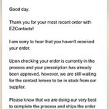 I ordered my contacts 16 days ago. For the last week, they've been telling me they're working on it, they're working on it. The status says fully shipped, but then the site says being processed. They happily took my money immediately but where are my contacts?