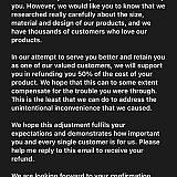 Thank you for bringing this to our attention. We are truly sorry that the item that you received did not make you delighted. We understand your disappointment and apologize for any inconvenience that this may have caused you.