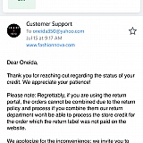 Their clothes quality is like a hit or miss, I returned two orders together and three months went by and not hadn't heard from them, I contacted them and they said they will only give me half the credit for first order because it's not allowed to return two orders together with their prepaid label you buy in their website. Anyway I told them that I didn't want half the credit that I wanted my order back instead and they didn't want to send it back to me. I lost the product and my money. I was a good costumer but now they lost me like they will keep losing people if they don't change their way.
