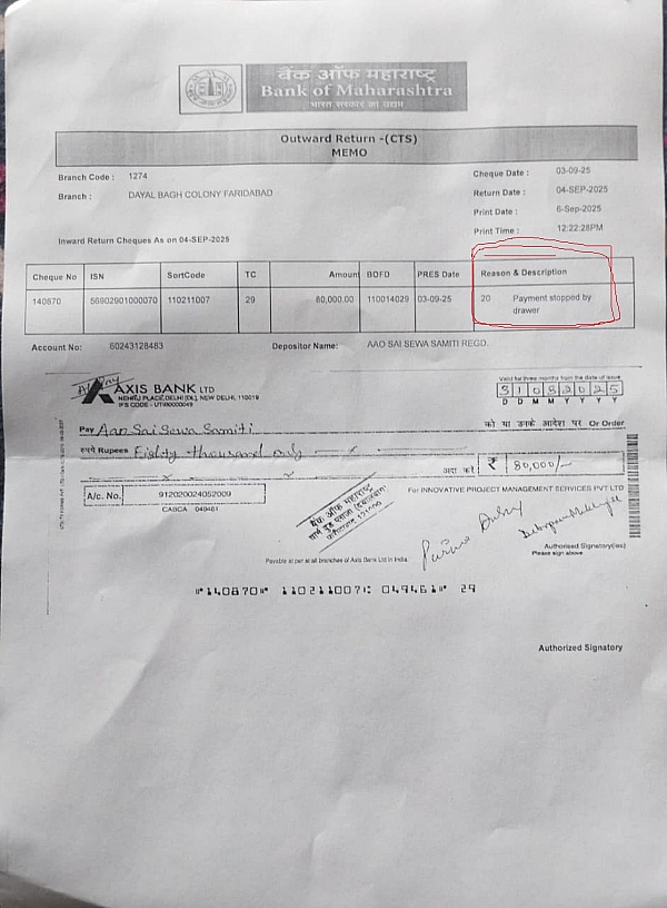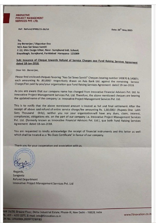 We've clearly said that we will not delete our review until the cheque is cleared. The public deserves to know how NGOs are being treated. We're attaching the letter and both cheques for your reference.