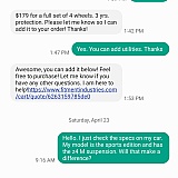 You can see in the screen shots the multiple times I reached out to them to get help with my order and they left me hanging. Again... DO NOT BUY from Fitment Industries or any other online tire store unless they have a garauntee and are assisted by knowledgeable tire and wheel specialist.