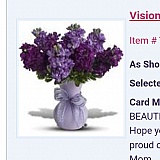 I ordered flowers for my daughter in law's birthday. She loves purple and there was many purple options on your site. I had a limit I wanted to stay with in. The arrangement I chose was a little bit over that but it was so pretty, so full and elegant and so purple. I know that some substitutions have to be made, I get that, but I am highly disappointed in what she ended up getting. I don't even know where to begin. For the money I spent I expected something resembling what I had ordered. The only similarity is there are SOME purple flowers in her arrangement. Her flowers look droopy and sad. Her vase isn't even purple. She was surprised and happy I sent her flowers so there is that. I will not be using them again.