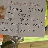 The card was hand written with child like calligraphy. The word birthday is split on two lines. No effort there.