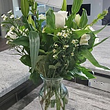 Sent a nice arrangement to my fiance's work which I do fairly regularly. They arrived to her place of business after she left for the day. That's not a problem because I ordered them the same day. She worked from home the following day. When she arrived to work the next day, the white roses were all dead. The flowers were taken care of properly by the other office staff members. My fiance discarded them and did not get a photo of the arrangement. This company refused to offer a refund or replacement (other than 10% which equates to a few dollars) since I did not provide a photo. Needless to say I certainly have no inclination to go out of my way to scam a florist. Will not do business in the future.