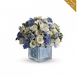 The picture of what was advertised for a new baby arrangement was vastly different than what was delivered. The color scheme was not even the same. The arrangement that I ordered was described as having "Dazzling white spray roses, happy yellow miniature gerberas, light blue delphinium, white waxflower and light blue organza ribbon" -- what was delivered were large white roses, gigantic yellow gerberas, and blue irises. NOTHING like I ordered. I also upgraded to a deluxe order -- the arrangement that was delivered was smaller than the "as shown" arrangement on the site. Please don't use this site to order flowers!