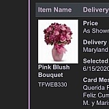 The delivery date, after 3 desperate phone calls to the costumer service, finally by 5 pm, a person delivery a diying flowers arrangements, with a wrong ballon and a lot of misspelling words in the card.
