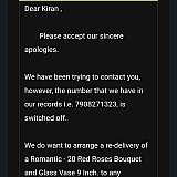 I think such fantastic service should be lauded and i really appreciate the team for rectifying my mistake and ensuring the flowers reached the recipient on time.