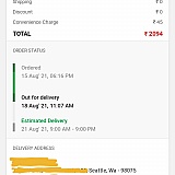 Please do not trust their international delivery. My rakhi order was supposed to be delivered on 23rd Aug 2021, which never happened. No one had the courtesy to inform that it is delayed. After multiple follow ups by me, they kept saying that its in transit. After one week of non delivery, the team canceled it on its own and had the audacity to charge me the convenience fee. Please help me understand, why I should pay convenience fee to you after so much inconvenience caused, and ruining the festival for me and my brother. It's not about the amount of convenience fee, but it is a matter of ethics and credibility. You are spoiling the emotions and sentiments behind the gesture. I will never recommend such fraud service to anyone. And mind it, its not happening for the first time, have experienced the same for my domestic deliveries as well - delayed, not delivered or spoiled items sent