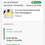I ordered a pictured cake for my sister from Dubai to be delivered in India, unfortunately, morning IST the customer service calls and tell us that picture cake is not available they will send a special cake. I placed an order for rectangular shape cake and in spite of that, they delivered round shape cake, nothing special.