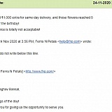 2. They had promised a specific day delivery for my brother's birthday flowers in Toronto, and charged Rs. 1,000 extra for it! The flowers reached 3 days late! I was neither able to track the order, nor got any assistance from FNP at all in the process!