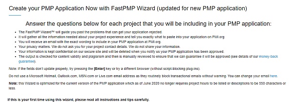 The weight of worry lifted while using this service. After completing my contact hours, I composed my project experience on my own following the tips I found in various websites. I hated all my drafts. I came across fpmcertify during a Google search and despite the reviews here, I was not sure how it would help me and if it was legitimate. I thought about it for 2 weeks. My family then got COVID and I spent time taking care of them. After they recovered, I purchased the wizard tool. I didn't want to continue searching via the web for guidance.