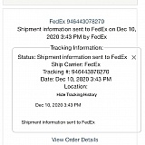I made a $400 purchase on December 10th with plenty of time to receive my purchase for Christmas here in the states. I usually wait no longer than 4-6 days for arrival of my purchases. I got a shipping notification as usual yet FedEx has never updated the tracking because only the shipping label was created. The order never shipped.