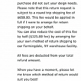 I ordered some brown leather stools that look way lighter online, so clearly they don't work. I contacted the company via email and they told me yes I can return them and $650 will be deducted from my original purchase amount of 1070. I called the number online and they said you can't talk on the phone to returns, only to sales. What a nightmare... u want the proof I've attached the email