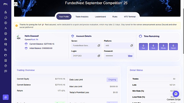 A big apprection to FundedNext and it's discord moderator's ( sir Shelby and Joel) for the distribution of the account won