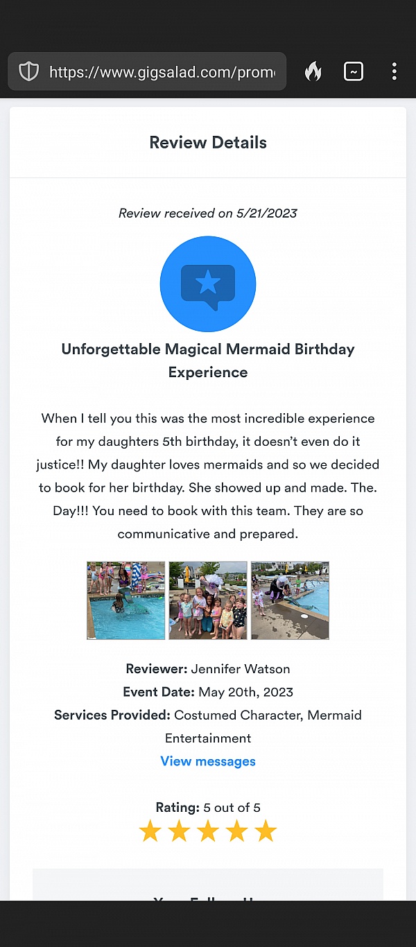 Love the professional look and ease of use of the website and I love the wonderful clients it sends me. They are all such nice people and really appreciate me. I am so glad I decided to try gigsalad.