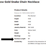 Goodwillfinds should be shutdown. I purchased a pendant and a purse in one order in April 2023. The pendant arrived and it was fine, but the purse never arrived. In another order, I purchased a 14K gold snake chain necklace that was described as 18 inches long, but it was actually only 16-3/4 inches long (see my photos below) and too short for me to wear. The purse was about $19 and the necklace was $255, and I received a discount of $10. The website tells you that all sales are final unless the item was described incorrectly or is damaged or wasn't delivered, etc. The website says to send an email regarding returns or problems. I sent emails about the purse that was never delivered and the gold necklace that was the wrong length, and I received an automated email response saying that GWF would be in touch with me within a few days. I waited but got no reply. I sent another email about these problems, and again, no response. Totally unacceptable! Spend your money on a website that has a real customer support department! I've bought items from different Goodwill stores on ebay and never had a problem, but GWF is a nightmare!