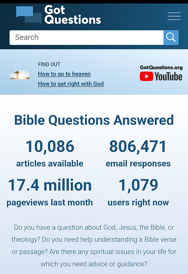 Placing one's self out there to answer biblical questions opens one up for criticism. I am thankful GotQuestions.org bravely posts well conceived and researched answers to life questions. For me, this site saves me a tremendous amount of time in research, and reading thousands of questions, I find it very faithful to the biblical record. I highly recommend this for Bible students looking for correct answers that are not pushing an agenda.
