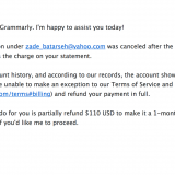 I contacted support to let them know I was dissatisfied, and ask for a refund. Note that Grammarly has a "no refunds at any time" policy. Unfortunate, given their high cost and student sided advertising. I can not recommend a service like this to anyone, given there is no way to ensure you will get value out of your money. It basically has resorted to predatory tactics, instead of excellent service in all aspects to get customers.