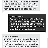 I try to contact the Groupon customer service. Call support which direct to website customer support, website live support chat does understand my claim because assume that automation computer respond keep ask my purchase order number which I cannot provide. Email claim has not received respond yet.