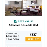 Quality and comfort - the hotel looks nice from outside and the reception area is decent. However when you get to your room, it's very small, the double bed is two twins pushed together, so the middle of the bed is extremely uncomfortable. Mattress is hard.
