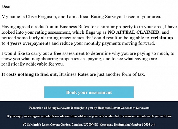 I was contacted by Hampton Lovett earlier this year advising me they believed my business rates were to high, i was skeptical at first as ive heard negative press about certain rating agencys, however i need not have worried, i was kept informed often about where my appeal was and what was happening, and in the space of a short time i was delighted to receive notification from the valuation office that my business rates were being reduced significantly, i cannot thank them enough for there help and id advise anyone to contact them to see what they can do for you.