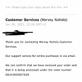 Ordered a gift on 01/27paid for $30 for delivery. Just keep getting emails and text saying delivery has arrived in country,I dont think it's the courier (DHL)) more like Harvey Nichols are not competent incapable to get Valentine's Day orders out. I've emailed customer service and tried to phone, guess what? No reply. I expected more from HN but they are just another faceless useless company with no level of customer service. DHL Customer Service told me HN canceled delivery!They failed to deliver after a week, and HN canceled my order, they still charged me $30 shipping fees, how come?HN never ever explain what's happening?I emailed HN which do not cancel my order twice, I waited at home all day long for packages! How disappointing and ugly the Harvey Nichols!