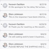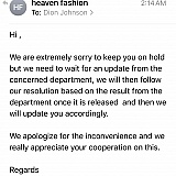 I ordered my ring in May. It did show a different company name then. But when I check my order confirmation it shows Heaven Fashion and the order number. But now they say they have only been in business since August and have no record of that order and therefore they can not do anything about it.