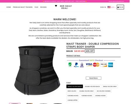 I ordered a waist trainer from herdailydeal.com on April 5th. I have yet to receive it or any shipping information on it. I have e-mailed the company several times, tried to ask questions via chat, and have not had any luck finding a phone number or an address to contact them. I WISH I had seen these reviews before ordering. I usually do, but for some reason, this time i did not. I have contacted the Better Business Bureau to submit a dispute. If anyone is thinking of ordering from this place DO NOT!