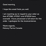 I ordered a company gift from Hickory Farm on the 11th. It was supposed to ship maximum by the 15th of December. When it did not ship, I called and inquired. The customer service reps made all kinds of excuses and said there were delays in shipping. How can that be when the item did not even ship yet? I escalated to a supervisor. The supervisor called back and said they were sold out and would refund my money. Seriously?! I asked for an equivalent item but they are apparently sold out of everything. Do not trust this company with your business. Leaving people in such a predicament during the holidays is simply unacceptable.