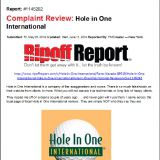 Hole in One International continues to scam lie cheat the public with deception false hoods out right rip offs of little old ladies of millions of dollars. STAY AWAY Never use for ANYTHING. Locals cannot stand them. They have over 80 BBB complaints and at least 100 complaints horrendous reviews all over the internet AND THEY ARE ALL True.