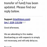 4. Clients on the hirewriters platform are not safe - If a writer does not meet the requirements of the client, and the client decides to withdraw cash from the platform, hirewriters will not make the refund. They will ignore all the messages, and you will be forced to dispute through PayPal to get your money refunded.