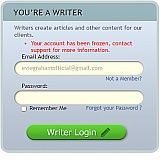Answer: Your hire writer account will be frozen if you violate their term of service. This include exchanging contact with clients, Submitting plagiarized content and having too many complaints from clients