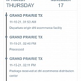 Received today items ordered 10 days ago, it appears order was processed promptly but carrier delay. For several days appeared no activity in tracking, six days later item in Texas, then sent to Georgia en route to