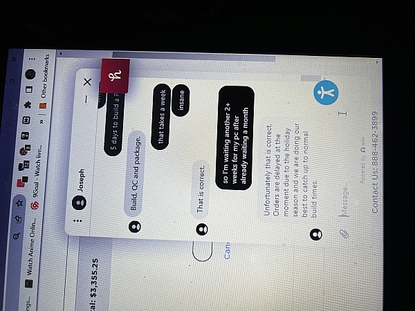 Placed an order on the 5th that was supposed to be shipped out on 12/19, waited till the 22nd to reach out to find out the order has been delayed, reached out again to find out why, and was told parts are back-ordered, ok that's understandable what parts(mind you this is all responses that took days from them, they send me a listed 2 weeks after order is placed and approved showing damn near my entire PC is back ordered, ok fine whatever we'll wait since they said it'll ship out next week, next week no answer still not shipped started new email with another customer service rep to be told yea we have the parts now its waiting to be collected now 4 weeks since the order, come Jan 3rd after no responses to email talked to chat rep and ya well you can see what I was told there, bottom line $#*! company, $#*! service, false ship and build times, once they get their money they could give a flying $#*! about what happens after.