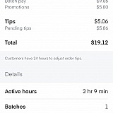 Spent 1hr and 40 min picking out items, scanning, weighing, waiting for meat to be sliced and messaging about replacement items for unavailable items for 2 diff customers - took 2 hrs total with delivery time. Got 19 dollars TOTAL including tips- and did I mention IT WAS SNOWING. Do not deliver for this company