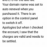 Shocking customer service I forgot I had a domain with this company and they set the domain... Without telling me... To auto renew... Then sent my details to a debt collection agency demanding £27 off me for the domain I forgot about... My credit score dived... Shocking
