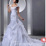 I would highly suggest buying from a completely different site. I ordered a beautiful dress from June Bridals and the product I received is a totally different dress. The dress below is the one I THOUGHT I was ordering. When I opened the package, I could immediately tell the materials they used were so cheap and it was not tailored well at all. The lace was nothing like the picture and the neck was tailored so awfully that I got a bad rash on my neck from it. The skirt part of the dress was also so cheap in comparison to what they advertised.