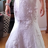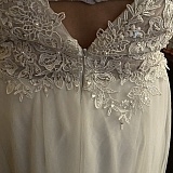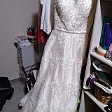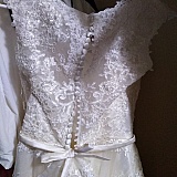 I am now on my third purchased dress from June bridal that are basically non-returnable this one fits and I'm so excited. The problem with this dress is there is pink on the buttons what looks like lipstick, snags throughout the lace on the dress and ripples in the waist area that are unable to be hidden. It is a beautiful dress but the lace is stretched out and I look pregnant. I have contacted them about this with three emails still no response! I am now in three dresses from JUNE BRIDAL that are unreturnable with NO RESPONSE and still no wedding dress.
