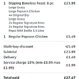 You'd better hope nothing goes wrong with your order because if it does you will end up paying for no food. Just Eat will refuse any refund. Almost £70 spent for no food. They offered a goodwill gesture of £33 credit to spend with them. Scammers. If I could give a negative star I would.