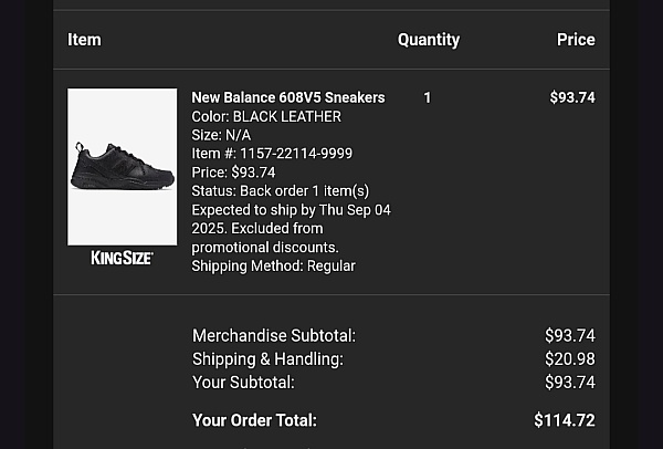 I have been using Kingsize direct for a few years now. And they never have been a top notch company. I ordered 6 tee shirts on 4/15/2021. Today is 6/3/2021 and I still have not received my order. They advertise these huge sales and flood my mailbox with special deals and if they are in stock, big if, I place an order if I need the product. Anytime I ask about my order I am told to be patient and because of Covid things are sluggish. That is BS, the truth is that this is a feckless company. I am a large human and can not just walk into a store and get 4xl clothing. So I started ordering from Kingsize. Big mistake. Now they are billing me for an order I never received. Way to go Kingsize. I have told customer service to cancel the entire order numerous times and have yet to get an answer that makes sense. I have found that if they ship you something by mistake it's easier to donate it or give it away. So unless they somehow redeem themselves, I am done with Kingsize. I am better off paying the premium of a brick and mortar store where I can get my clothing right then and there and develop a relationship with the staff there and get something that Kingsize has no notion about, it's called SERVICE.